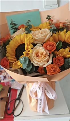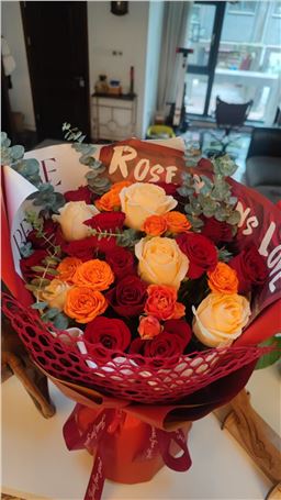 花束新鲜,色彩鲜艳,放在家里瞬间提升了气氛,非常满意。