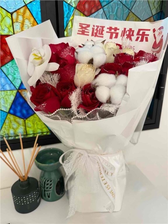 花礼网的鲜花品控真的没得说,送货非常准时,每次订花都很放心,从APP、客服到品质、包装、运输,每一个环节都没有疏漏。这次要给商家一个大大的赞,为了不把花弄坏,商家特意在外面包了一层垫膜和一层玻璃纸袋,我们拿的时候也很好拿,想的真周到!