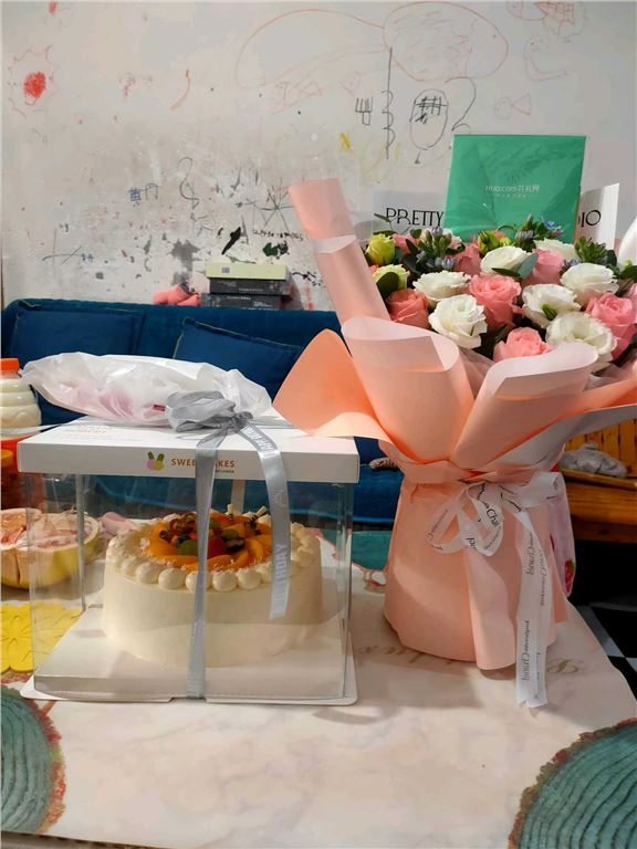 蛋糕还不错!鲜花小了点!呵呵!总的说来还不错!