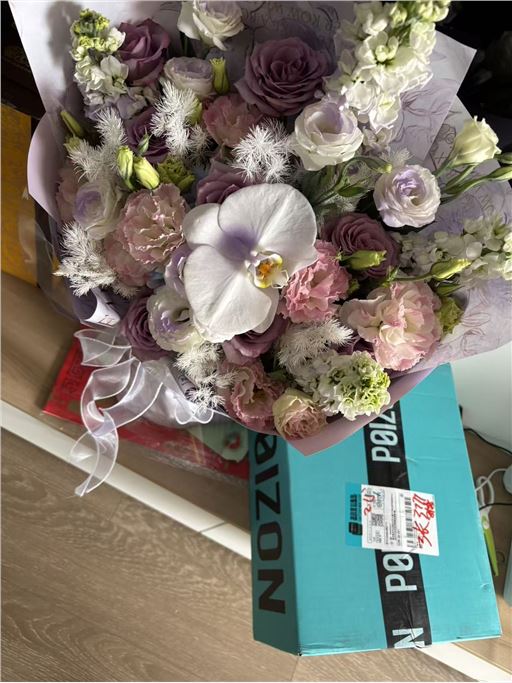 花很漂亮,只是中途派送出了一点问题,迟到了1个半小时送达,客服有帮忙即时解决,总体而言满意~