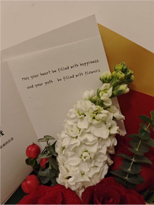 花束新鲜无残朵,包装漂亮用心,按时配送到位。 Like!