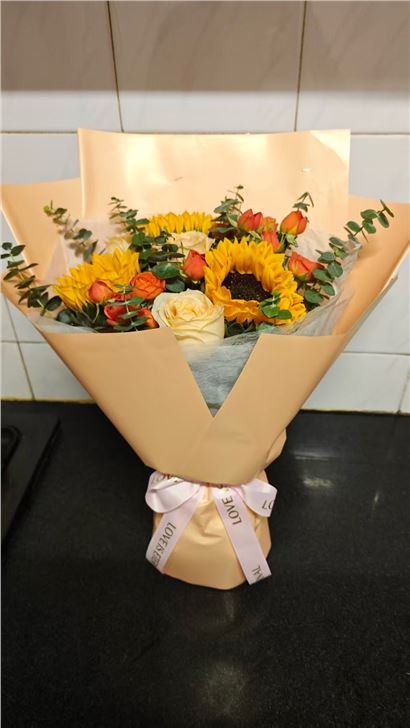 十分大方得体的花束,特别适合送给长辈噢!花材色泽鲜艳,如同阳光明媚的夏天,喜气洋洋! 花束价格适中,送花速度一如既往地快,每次都能够按时送到家人手上! 花材比较新鲜,收花人也很满意,很开心! 值得回购。👍