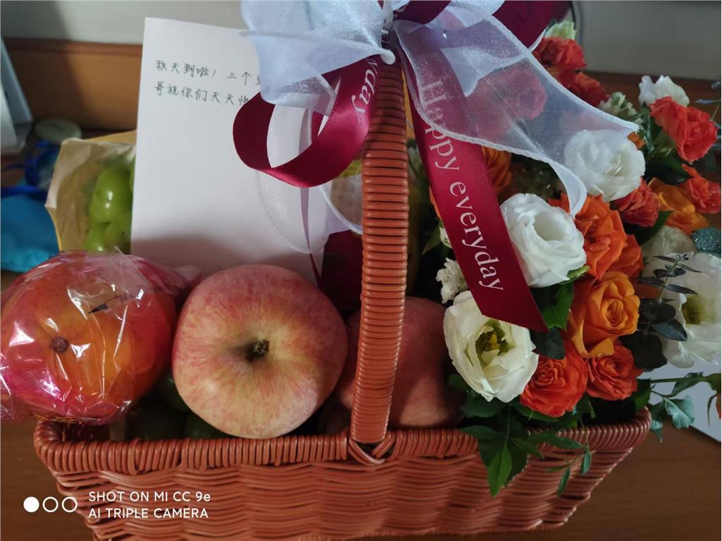 花很漂亮,水果也很棒!爸爸妈妈很喜欢!