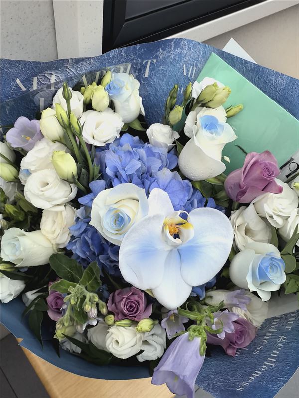 非常漂亮的花,很喜欢!因为出门吃饭了,让师傅转送到家附近的饭店也非常配合,很辛苦他,服务到位!