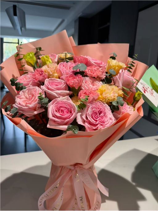 花做的不错,蛮好看的! 包装也还可以 可以做的再大气点 下次要提高送货速度和服务哦