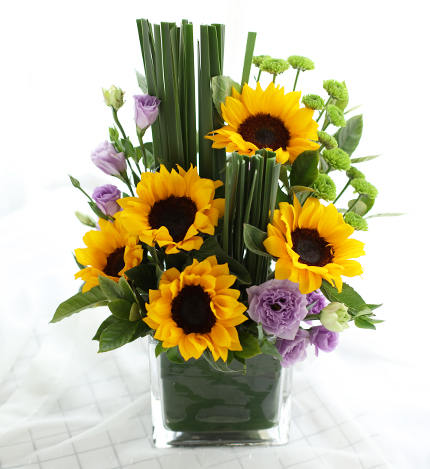 向阳----向日葵5枝、绿小菊3枝、紫桔梗3枝