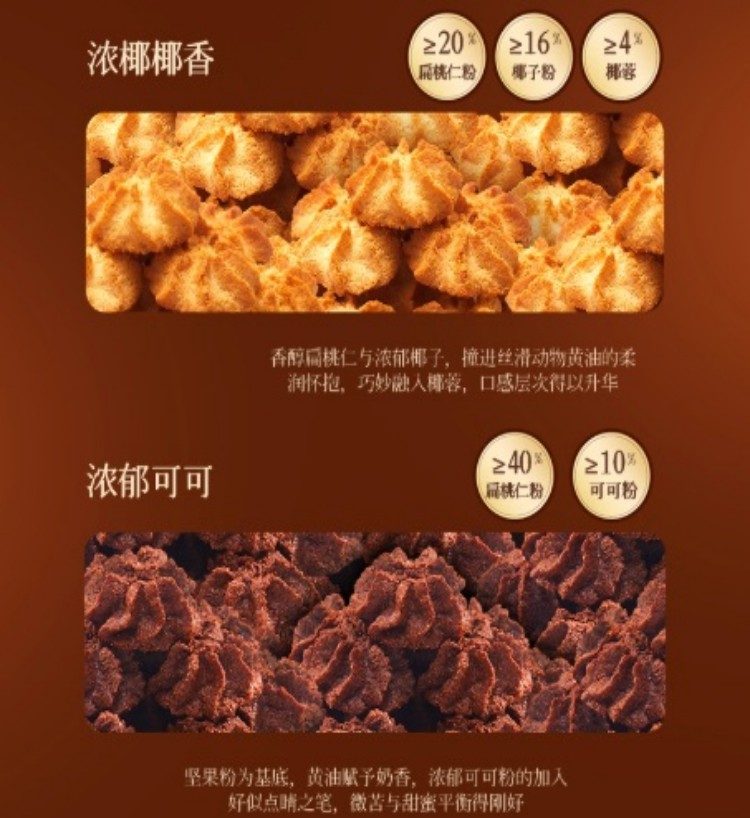 浓郁可可:扁桃仁≥40%,可可≥20%
