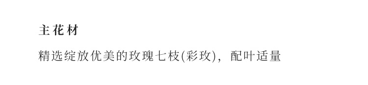 精选绽放优美的玫瑰七枝(彩玫),配叶适量,在采摘后一