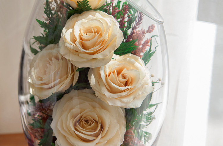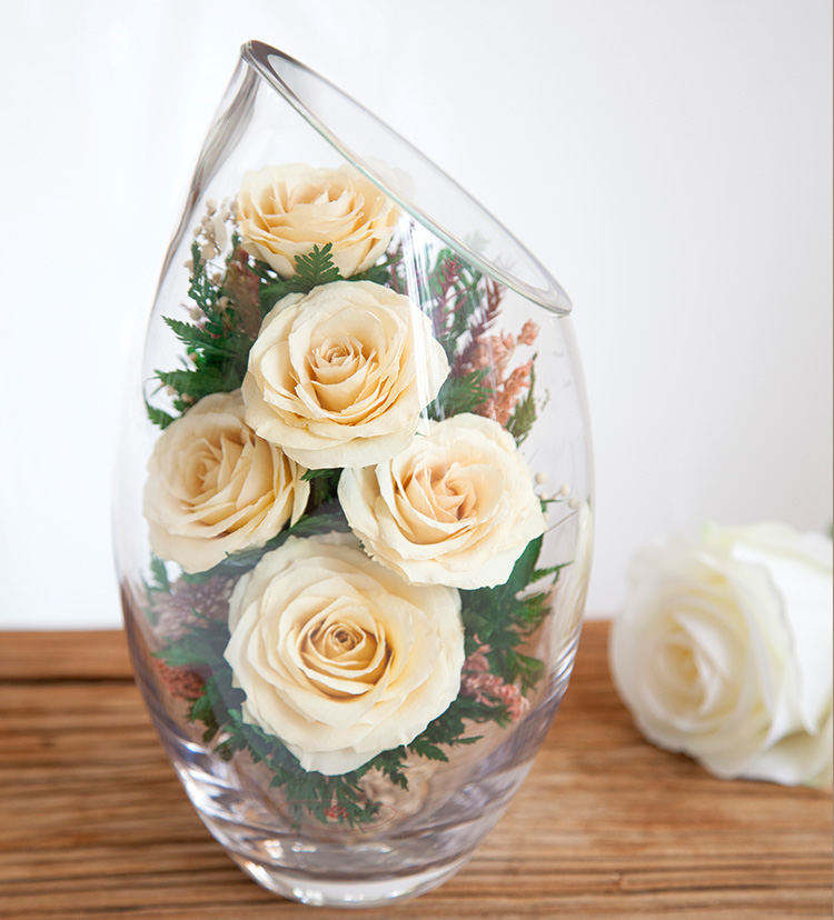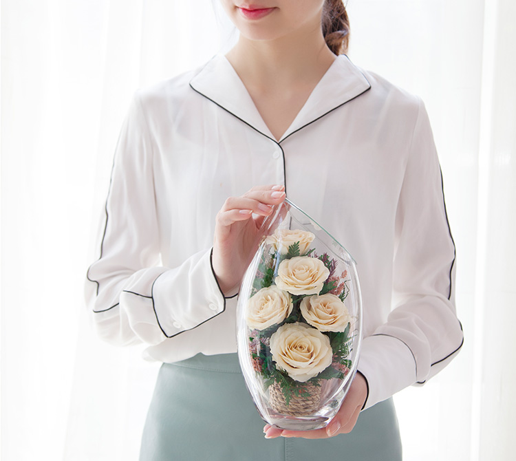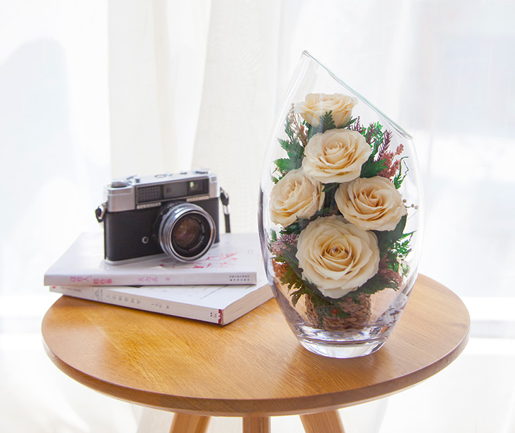 花色泽和形态,经泰国花艺师精妙构思与巧手装扮,封入