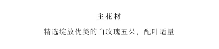 精选绽放优美的玫瑰五枝(白玫瑰),配叶适量,在