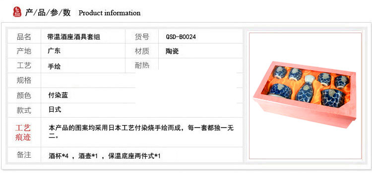 喝酒佳器,带温酒座,日式陶瓷酒具套装