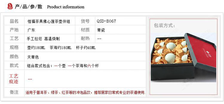 整套茶具瓷色圆润流畅,光洁如玉,壶盖人性化防摔设计,留有个出气孔泡茶的时候必定茶香四溢,适用于普洱茶、绿茶、红茶等的冲泡品饮。