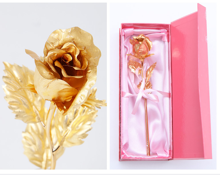 金箔玫瑰采用纯度99.9%千足金箔制作,花朵、叶片为纯金箔,内部有一个透明骨架作为支撑,绝非镀金工艺,花杆为聚乙烯镀金,轻盈、不易折。