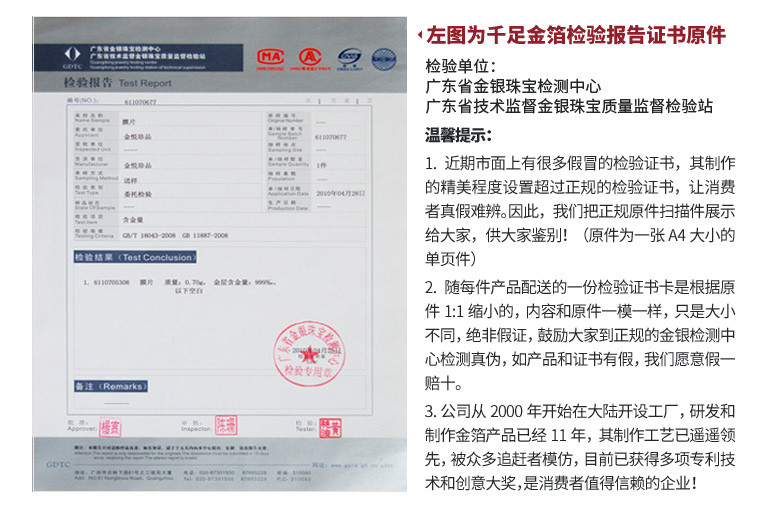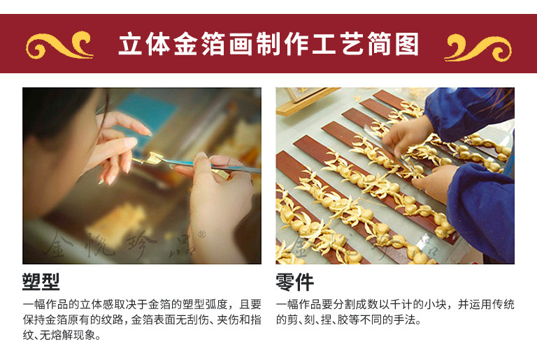 立减8元3D立体金箔画画芯金箔均采用3D技术,酷似立体雕塑,产品更显精致、立体、贵气。采用台湾进口高纯度金箔制作而成。金箔是采用纯金条以高新纳米技术、离子披覆方式使其披覆在透明塑料胶片(PET)上形成一层 薄薄的黄金面而成,它的含金量为999金(千足金)。因此,它可以完整保留黄金特有的色泽,高贵典雅,永不变色,恒久保质!