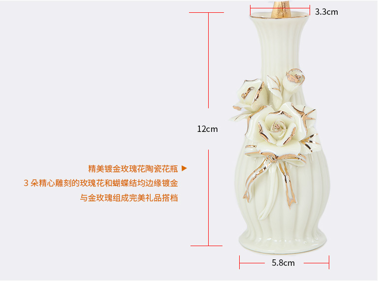 千足金箔玫瑰花/大号含苞+陶瓷花瓶