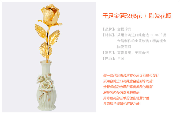 首页 > 礼品 > 金箔花 > 千足金箔玫瑰花/大号含苞+陶瓷花瓶