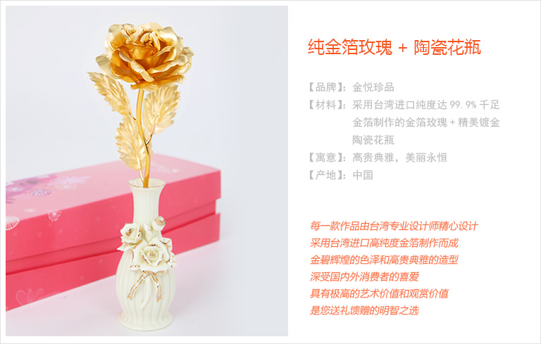 取消:999纯金箔玫瑰+陶瓷花瓶