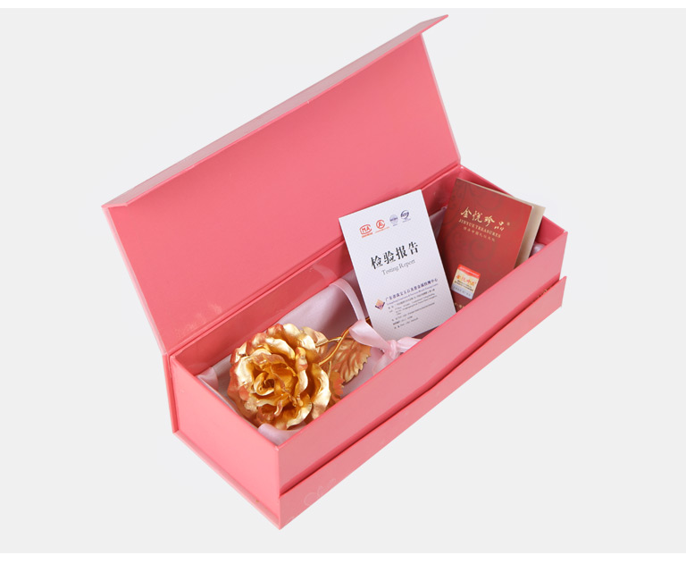 金箔玫瑰采用纯度99.9%千足金箔制作,花朵、叶片为纯金箔,内部有一个透明骨架作为支撑,绝非镀金工艺,花杆为聚乙烯镀金,轻盈、不易折。