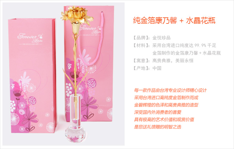首页 > 礼品 > 金箔花 > 取消:999纯金箔康乃馨+水晶花瓶
