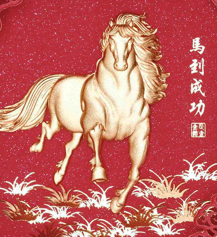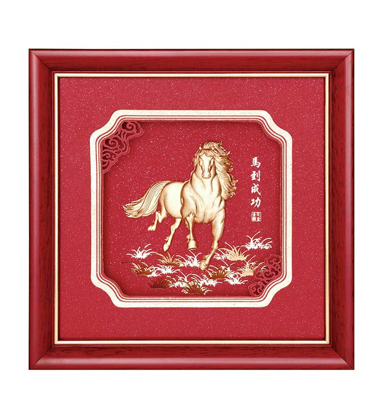 祥云雕花金箔画-马到成功
