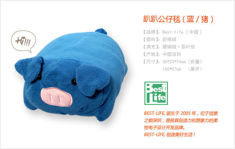 首页 > 礼品 >BestLife > 趴趴公仔毯(蓝/小猪)