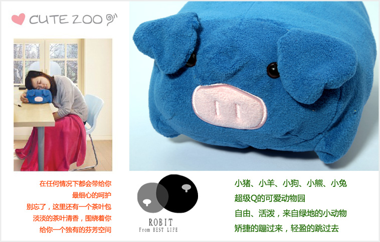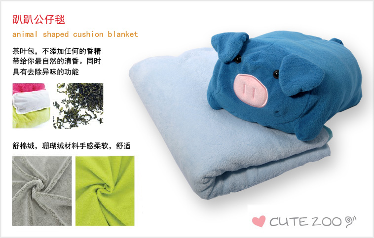 舒棉绒 珊瑚绒+茶叶包 超级Q蓝色小猪 永远的呵护