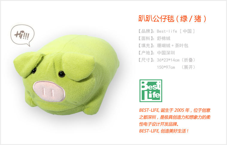 首页 > 礼品 >BestLife > 趴趴公仔毯(绿/小猪)
