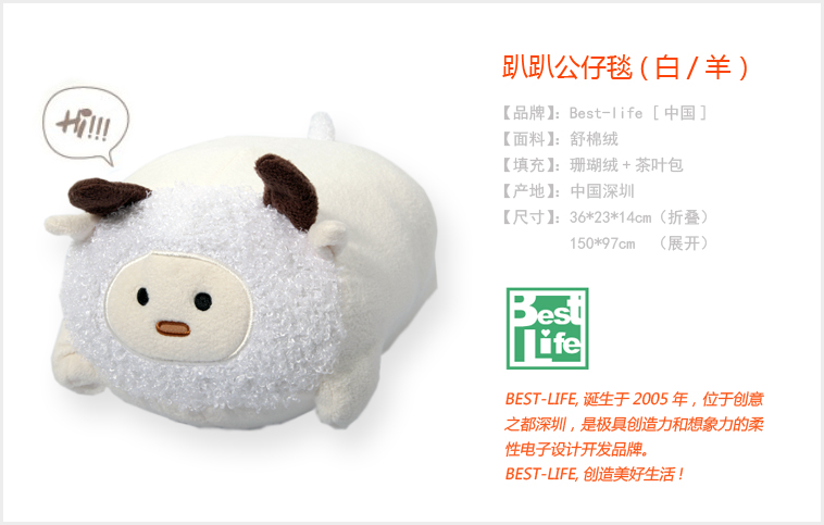 首页 > 礼品 >BestLife > 趴趴公仔毯(白/小羊)