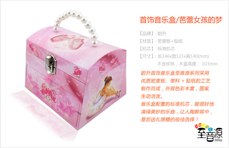 内置韵升标准机芯。具首饰盒+音乐盒双重功能。