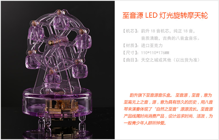 首页 > 礼品 >音乐盒 > 至音源LED灯光旋转摩天轮/紫色