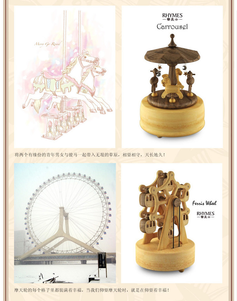 [浪漫,经典,专业手工打造] 旋转木马音乐盒