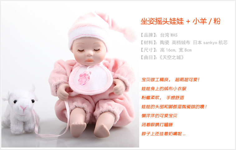 首页 > 礼品 >音乐盒 > 坐姿摇头娃娃+小羊/粉