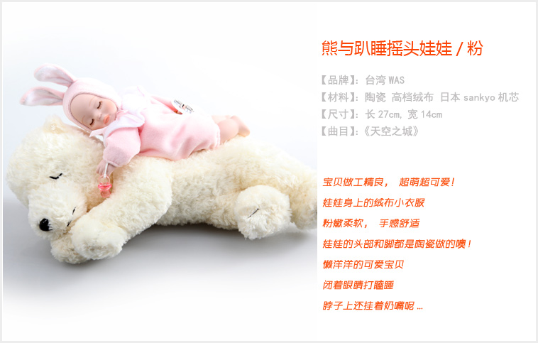 首页 > 礼品 >音乐盒 > 熊与趴睡摇头娃娃/粉