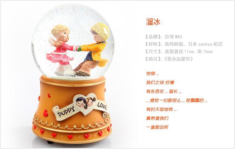 WAS精品《溜冰》音乐盒 高档树脂 内置日本sankyo机芯 音乐纯正