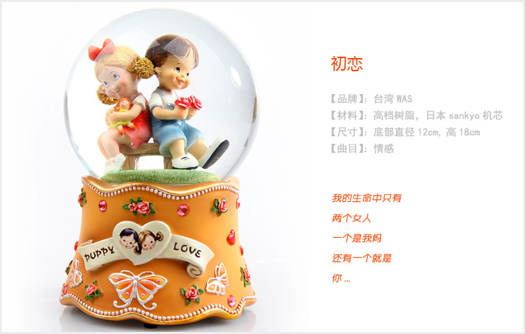 WAS精品《初恋》音乐盒 高档树脂 内置日本sankyo机芯 音乐纯正