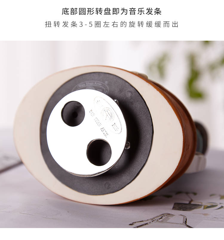 WAS精品音乐盒摆饰,高档树脂材质,内置日本sankyo机芯,音乐纯正。色彩鲜艳,设计创意,卡通人物造型,表情生动,超级可爱,做工精细...宝贝底部转盘即音乐发条,扭动发条,音乐响起,宝贝整体还会旋转。