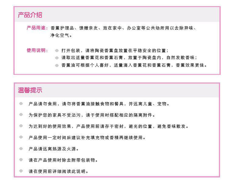 套装组成:3毫升香薰油一瓶、心形陶瓷碗一支、香薰干花一盒