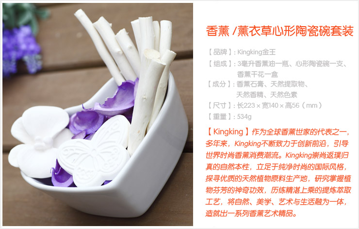 kingking香薰系列:薰衣草干花 心形陶瓷碗 香薰干花礼盒