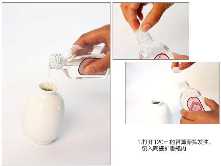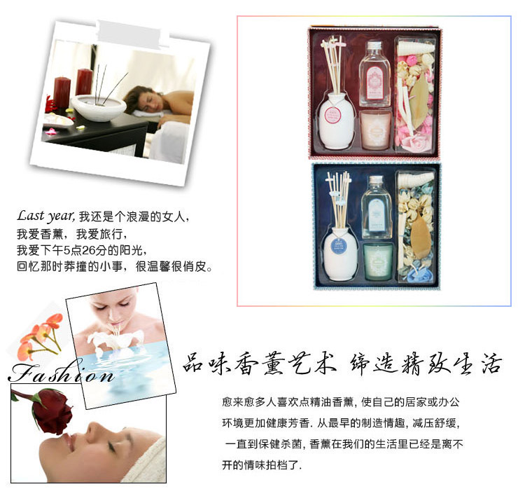 立减8元套装组成:陶瓷扩香瓶一支、香薰藤条一束、香薰油一瓶、杯蜡一支、香薰干花一盒