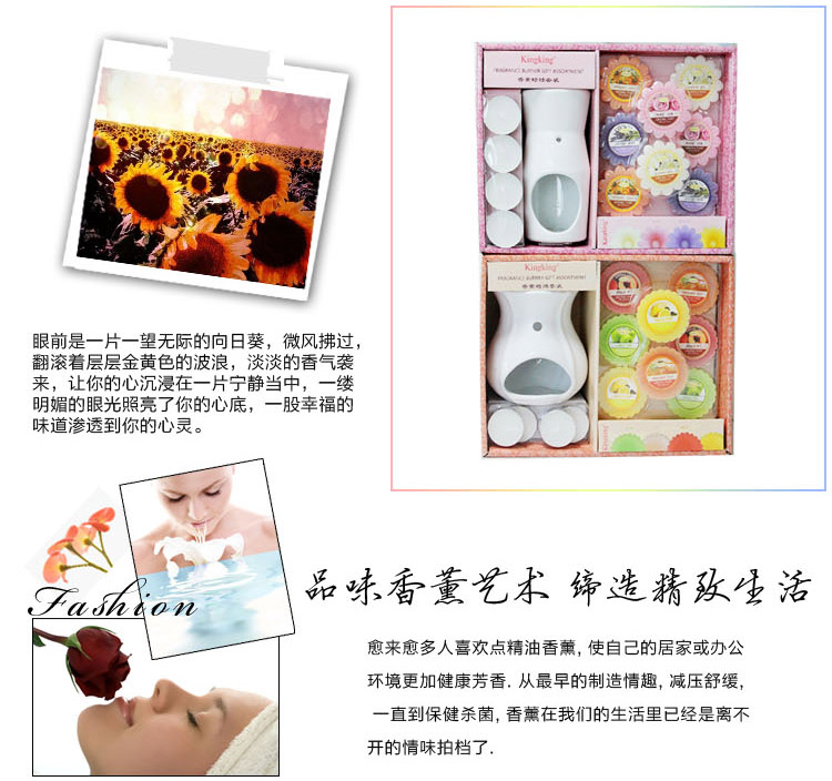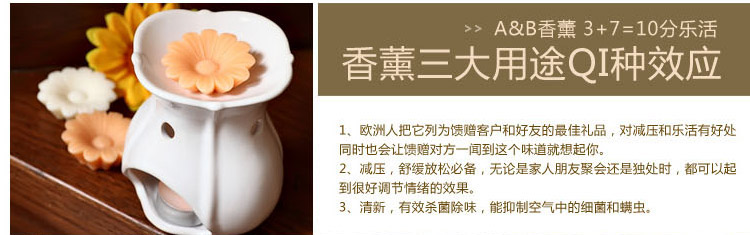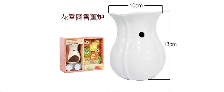 套装组成:香薰陶瓷炉一支、白色铝壳茶蜡四支、香薰tart八支