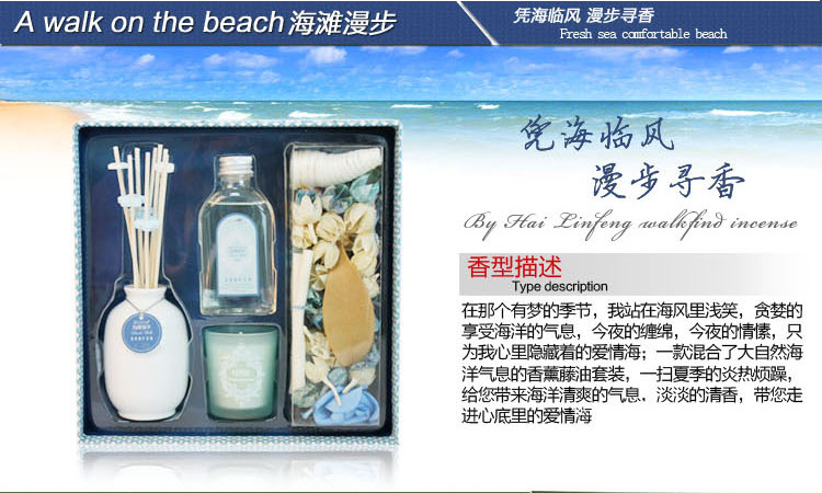 香味描述: 海洋的气息,今夜的缠绵,今夜的情愫,只为我心里隐藏着的爱情海;一款混合了大自然海洋气息的香薰藤油套装,一扫夏季的炎热烦躁,给您带来海洋清爽的气息。淡淡的清香,带您走进心底里的爱情海。