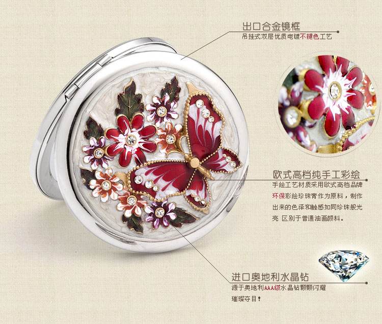 精品化妆镜,欧式高档纯手工彩绘,进口奥地利水晶钻