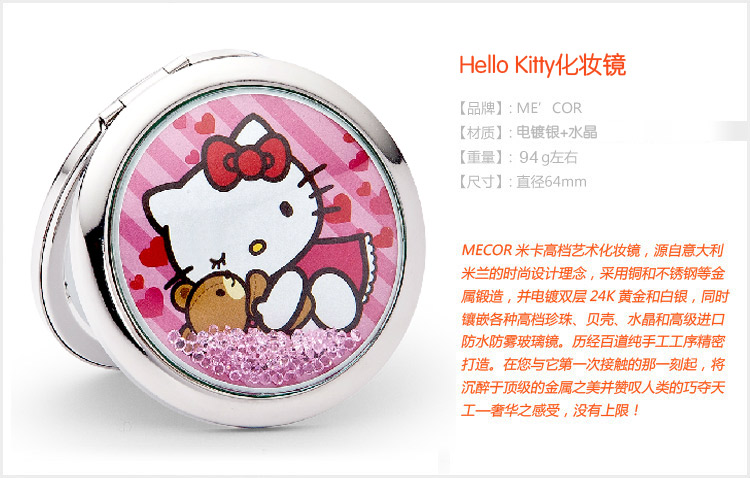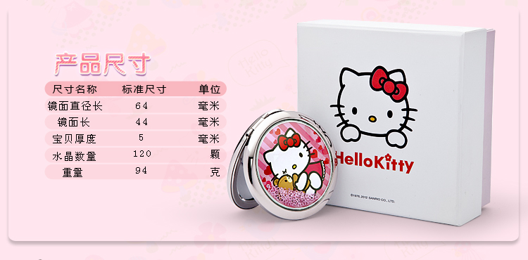 镶有120颗水晶,银色化妆镜,官方授权正版凯蒂猫
