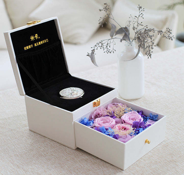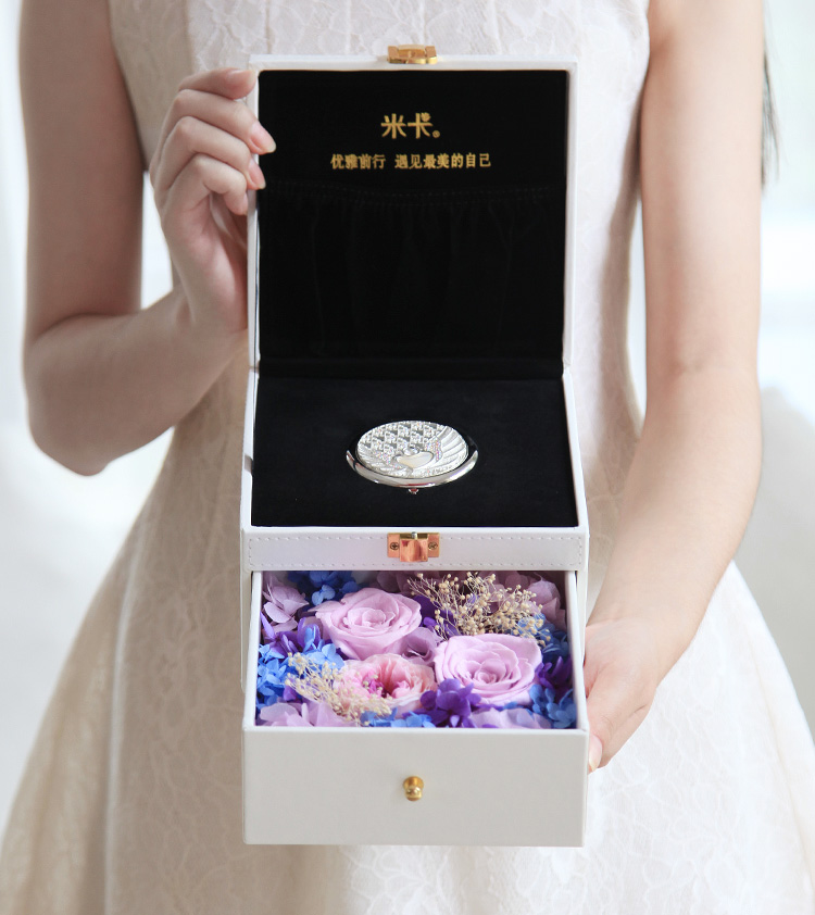 [精品化妆镜+皮质双层礼盒] 化妆镜+永生玫瑰,送恋人妻子专属奢华系列礼盒