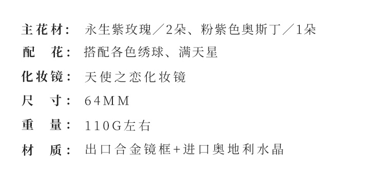 首页 > 礼品 >永生花 > 天使之恋化妆镜永生花礼盒