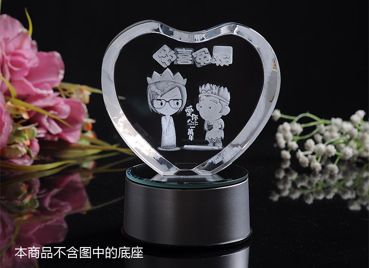 心形3D水晶内雕欢喜冤家(单品)