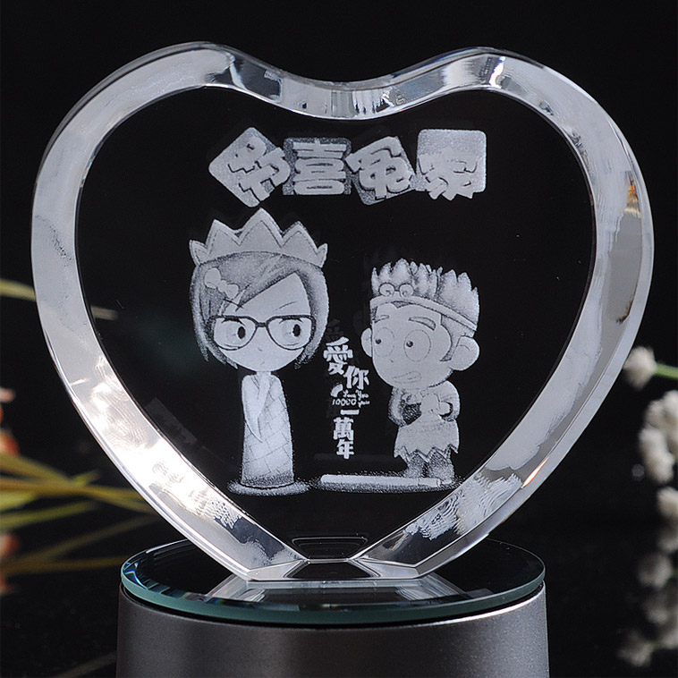 [会唱歌会发光的心形水晶] 激光内雕水晶工艺品