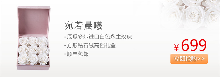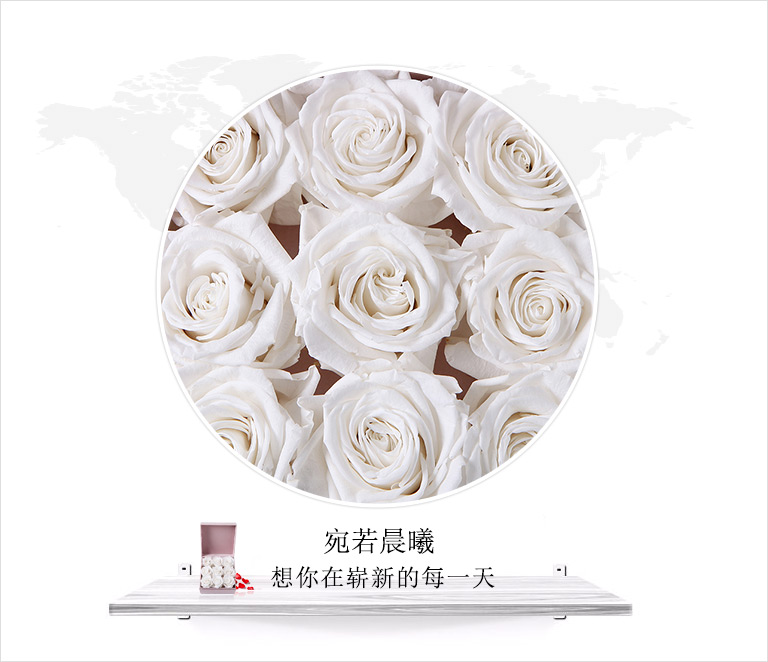 FlowerSong系列永生花盒:厄瓜多尔进口白色永生玫瑰9枝(直径7.5-9cm)