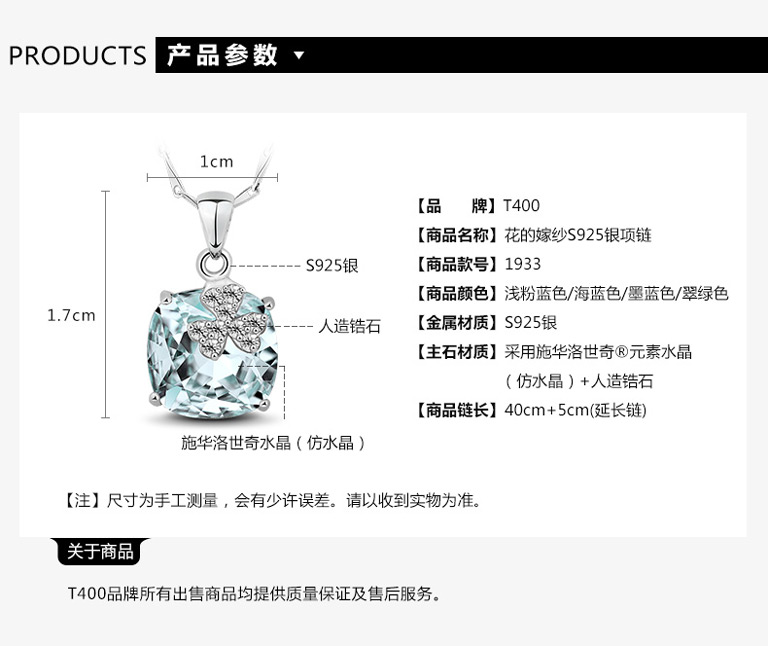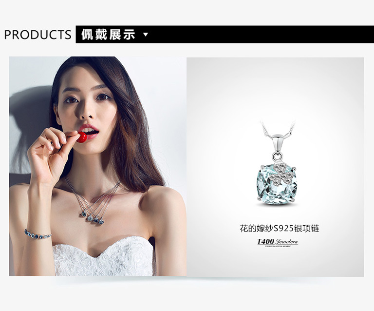 [畅销款特惠] 厄瓜多尔进口巨型彩色玫瑰+T400花的嫁纱S925银项链