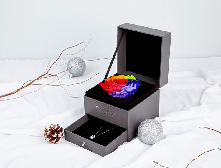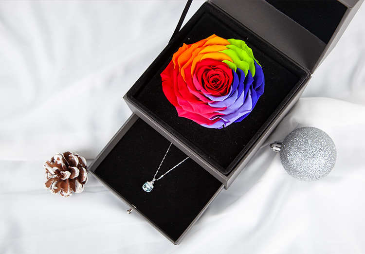 FlowerSong巨型玫瑰系列:厄瓜多尔进口巨型七彩玫瑰(直径9-10CM)+T400花的嫁纱S925银项链(纯银镶嵌宝石,采用施华洛世奇元素水晶)